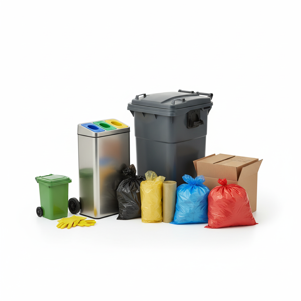 Soluzioni per la gestione dei rifiuti: sacchi certificati, contenitori, materiali per raccolta differenziata e articoli per lo smaltimento sicuro dei rifiuti.