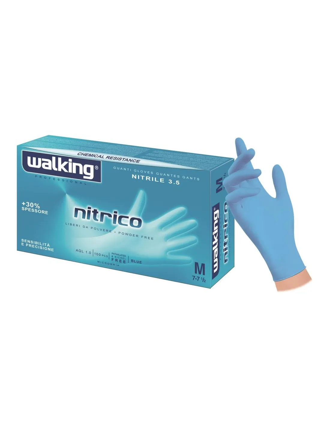1000 Guanti Nitrile blu senza polvere Nitrico Walking 3.5 gr - scegli taglia S/M/L/XL